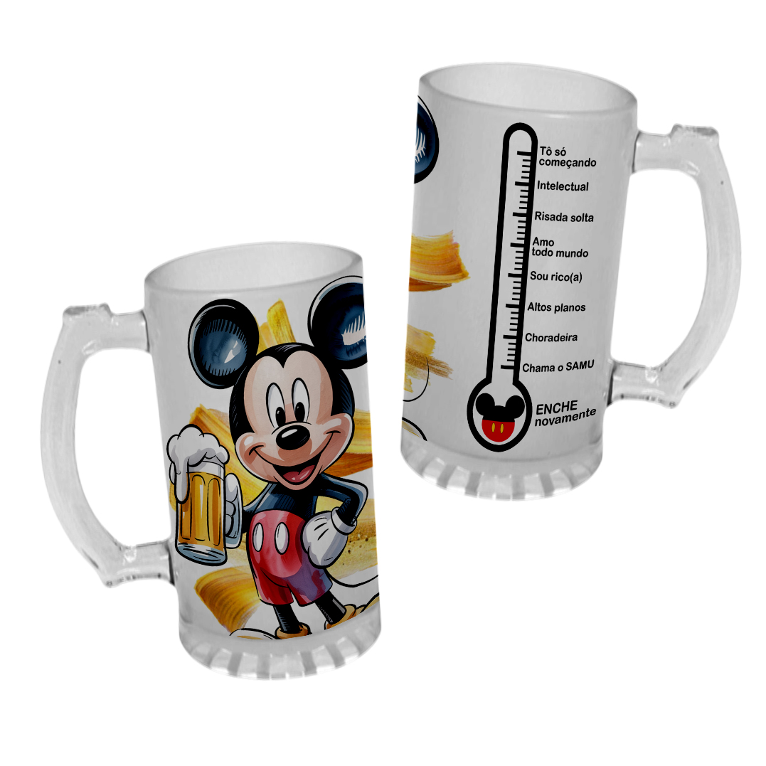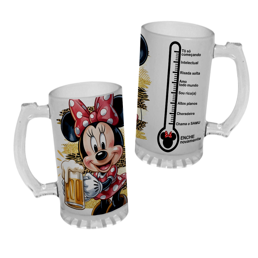 Caneca Chopp Vidro Mickey Minnie Mouse Enche Novamente